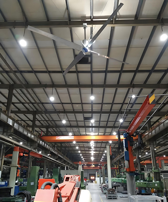 Key configurations | Motor: Nord gear motor or PMSM motor Control panel:integrated VFD regulator,wireless group control is optional Blade: punched process with 5052H35 aluminum alloy 1.5 mm thick plate. Universal bracket:Plumb the extension tube in both horizontal directions at the location of Rigid Mount. | ||